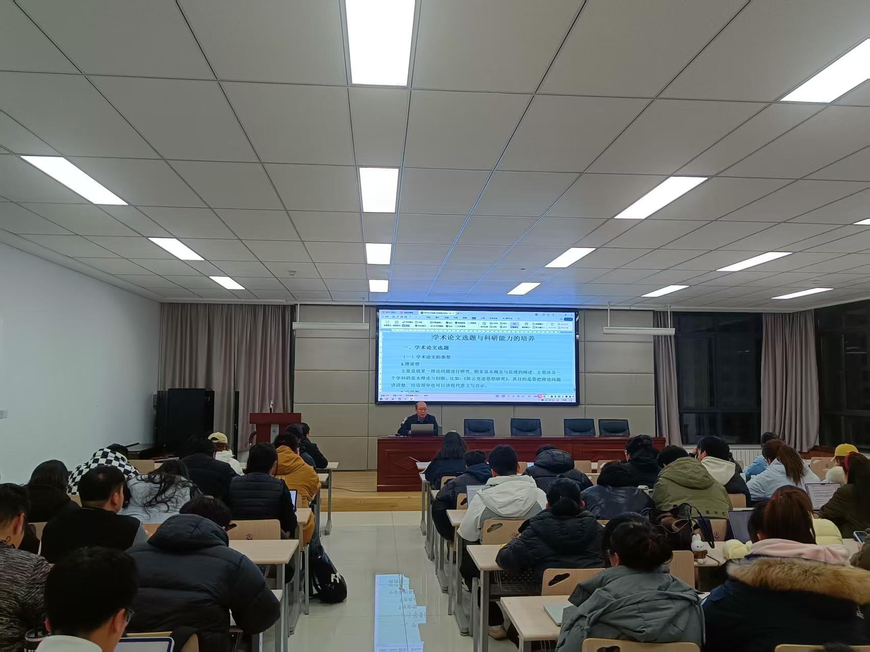 12月2日晚,延安大学中国共产党革命精神与文化资源研究中心常务副主任崔海亮教授为政管学院2025级全日制研究生做了题为“学术论文的选题与科研能力的培养”的专题讲座,讲座由分管研究生工作副院长王峰主持,研究生秘书及2025级全日制研究生60余人参加。