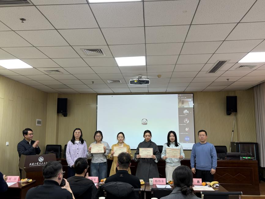 开题会分为两个环节。第一环节是2025年开放课题总结和2026年开放课题启动。会议伊始,首先对2025年度顺利完成结题的项目进行了总结与表彰,社科处刘江科长、教科院杨伟东博士为顺利结题的课题负责人颁发了结题证书。随后,宁轩婷、田晨阳两位同学作为结题“优秀”和“良好”课题负责人代表分享了课题研究经验,胡若楠博士对2025年度课题结题工作进行了总结,为后续课题开展提出了六点建议。紧接着举行了2026年度新立项课题的启动仪式。与会老师为温尔雅等9名2026年度立项课题负责人代表颁发了立项证书。