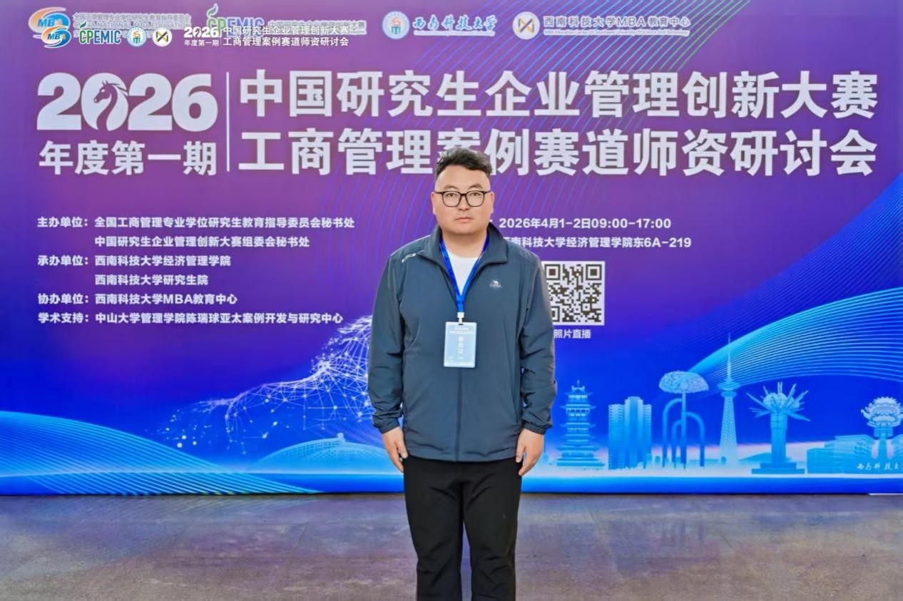 2026年4月1日至2日,2026年度第一期中国研究生企业管理创新大赛工商管理案例赛道师资研讨会在西南科技大学成功举办。本次研讨会由全国工商管理专业学位研究生教育指导委员会秘书处、中国研究生企业管理创新大赛组委会秘书处主办,西南科技大学经济管理学院、西南科技大学研究生院承办,西南科技大学MBA教育中心协办,中山大学管理学院陈瑞球亚太案例开发与研究中心提供学术支持。我院徐宁博士受邀参加,来自全国MBA教指委相关领导、国内高校案例教学领域知名专家、各高校MBA培养单位负责人及赛事指导教师代表130余人参加本次研讨会。研讨会围绕数智时代人才培养、案例开发、教学应用、赛事指导等议题展开深度研讨。